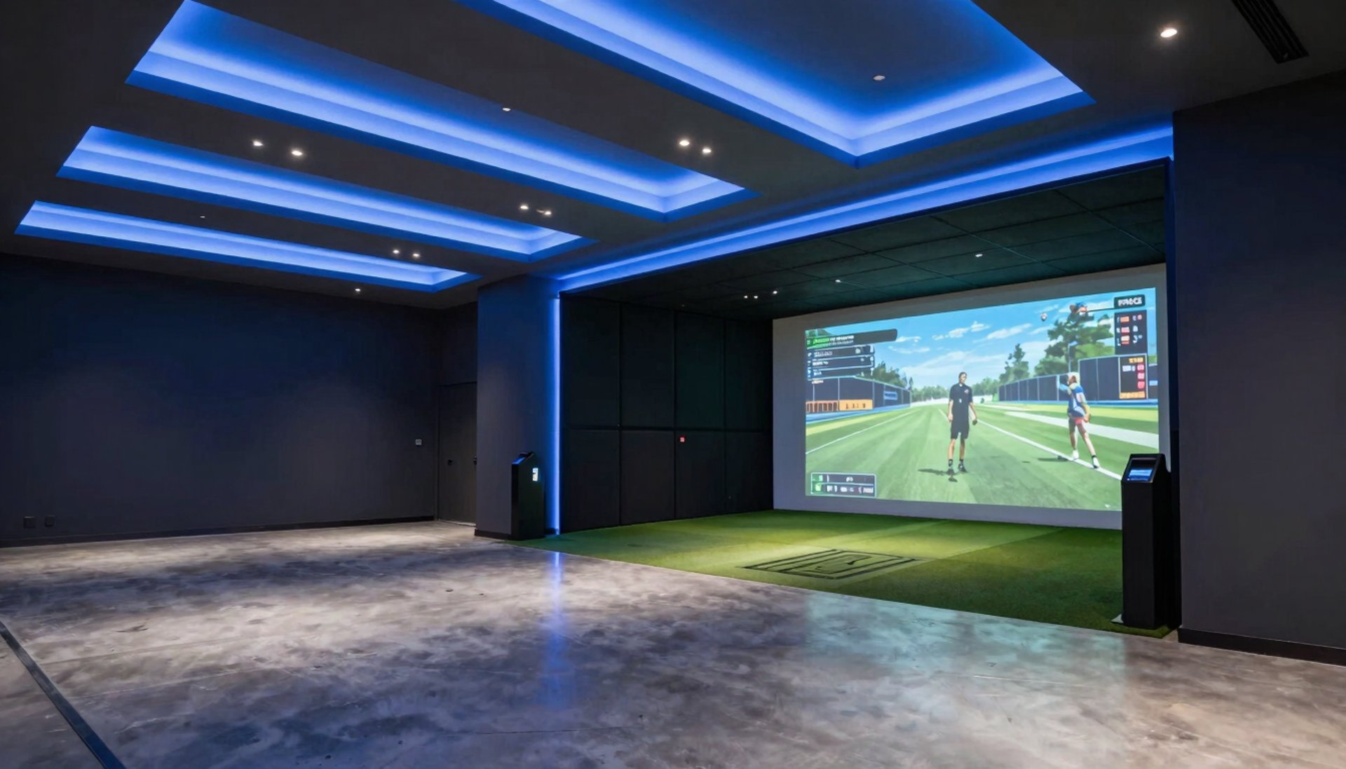 Explore o futuro do entretenimento com experiências imersivas de golfe e baseball indoor em um ambiente premium e tecnológico.